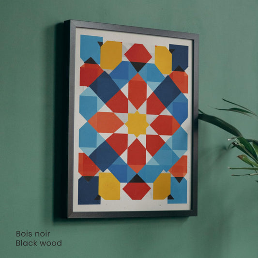 Affiche géométrique Bauhaus & art islamique | Poster abstrait moderne rouge bleu jaune | Décoration murale design