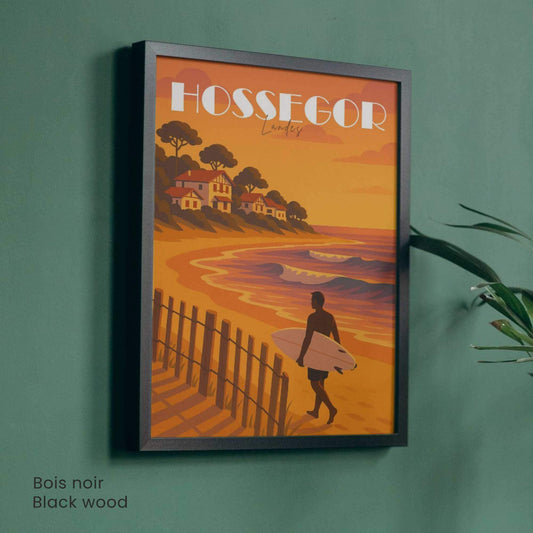 Affiche Hossegor – Landes | Illustration Surf au Coucher du Soleil | Poster Vintage Océan Atlantique