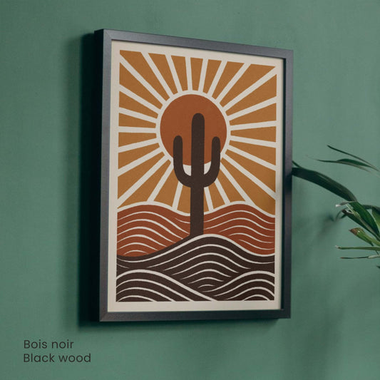 Affiche Désert et Cactus | Poster Soleil Couchant Graphique | Décoration Murale Mid-Century