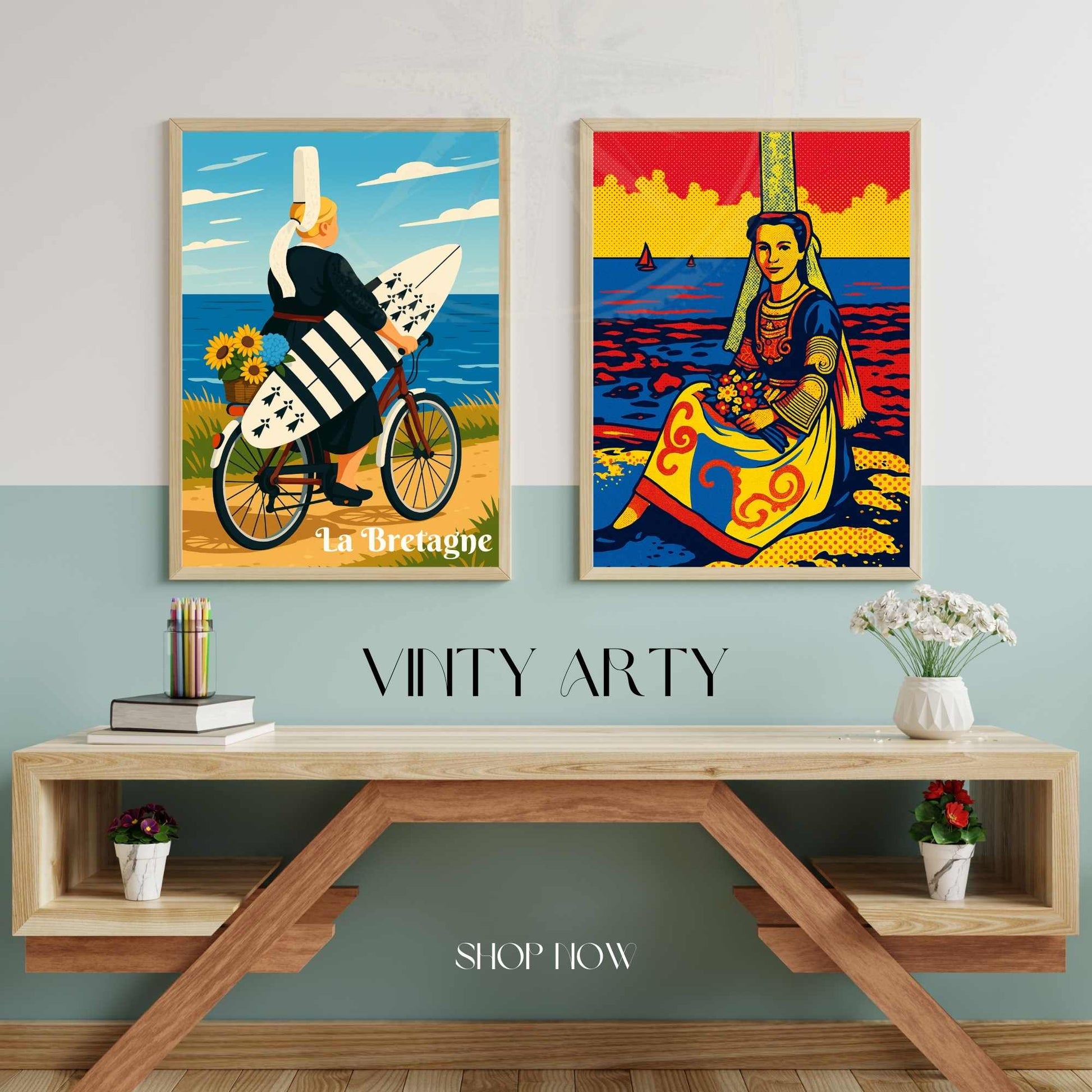 Diese Illustration vereint Humor, Tradition und Ästhetik. Sie erinnert sowohl an bretonische Wurzeln als auch an den freien Geist der Surfer. Ob im Wohnzimmer, Büro oder Ferienhaus – sie schafft eine fröhliche und grafische Atmosphäre.