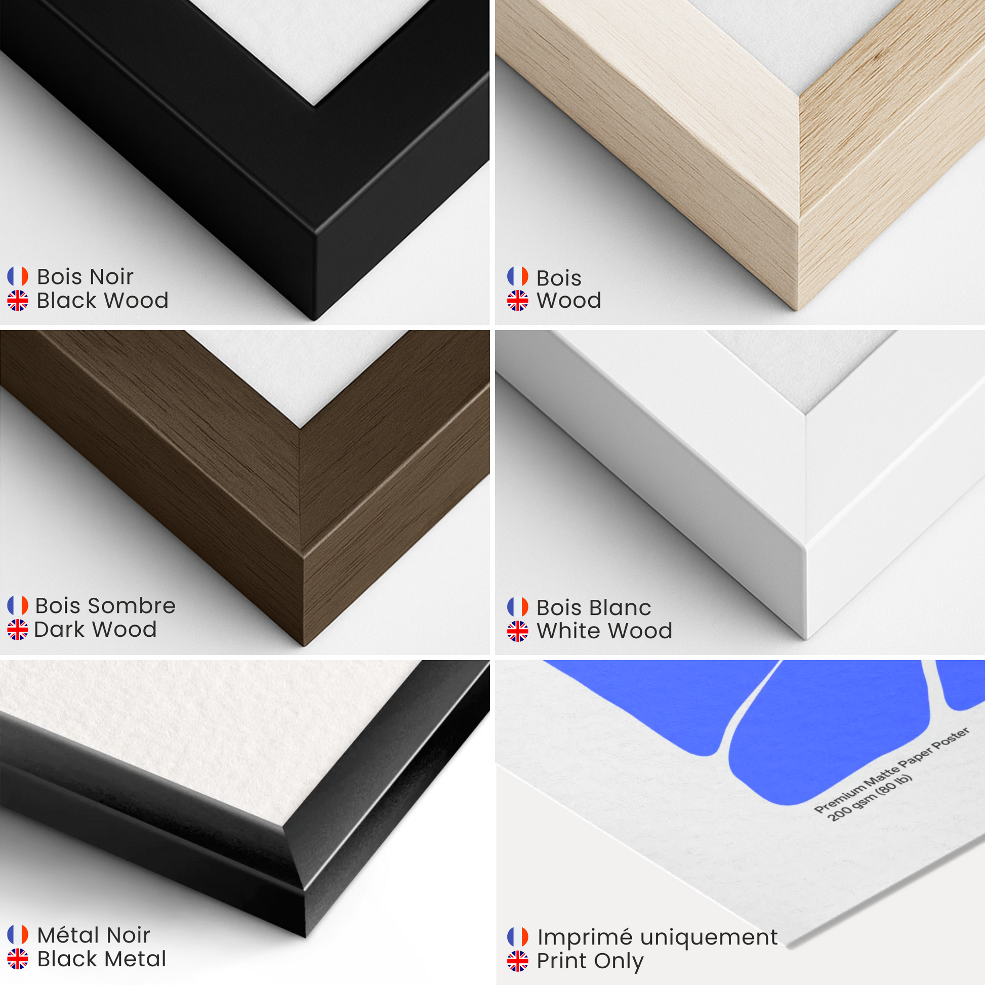 - Avec cadre : bois naturel, noir, blanc, foncé ou métal noir