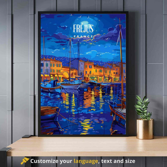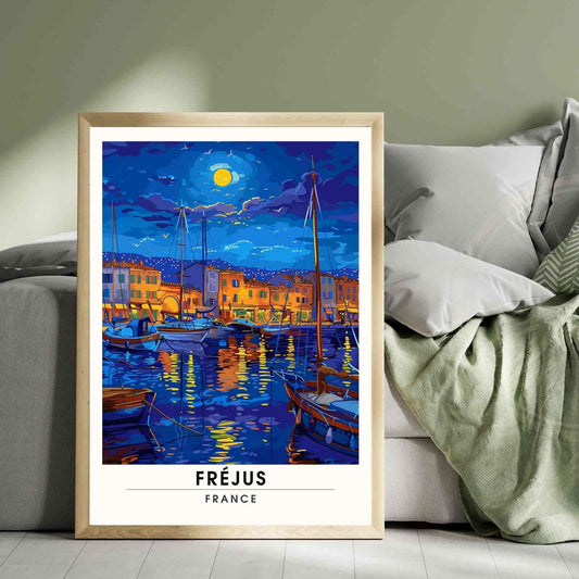 Affiche Fréjus, France - Impression Fréjus - Côte d'Azur voyage nocturne
