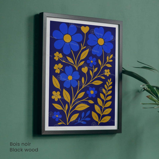 Affiche Roses Bleues et Or | Poster Botanique Moderne | Décoration Murale Élégante