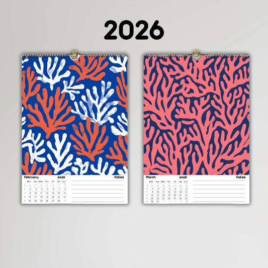 Calendrier mural 2026 Corail | Calendrier Personnalisable | Papier premium & design moderne | Calendrier 2026