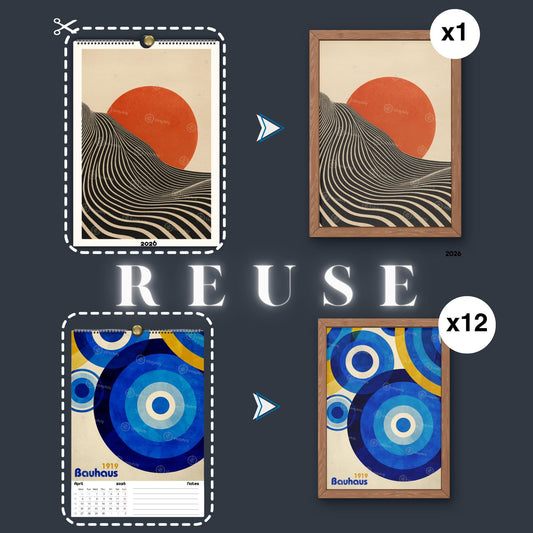 Calendrier mural 2026 Bauhaus | Illustrations Op Art réutilisables en affiches | Papier premium | Calendrier 2026