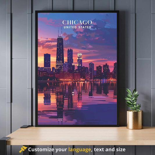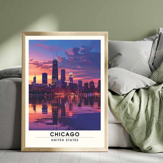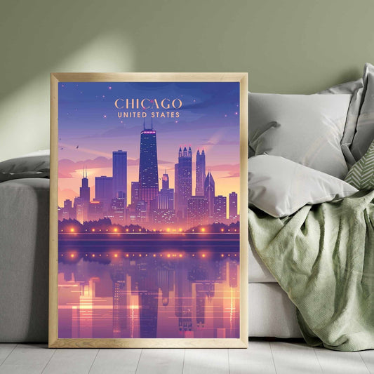 Impression Chicago au Coucher de Soleil | Explorez la Beauté Sereine de Chicago, Illinois