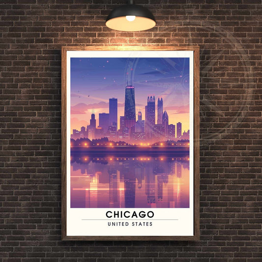Impression Chicago | Affiche de Voyage Chicago | affiche USA - Chicago la nuit