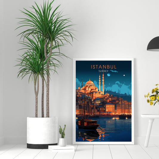 Impression de voyage Istanbul | Affiche Istanbul centre | Voyage nocturne à Istanbul