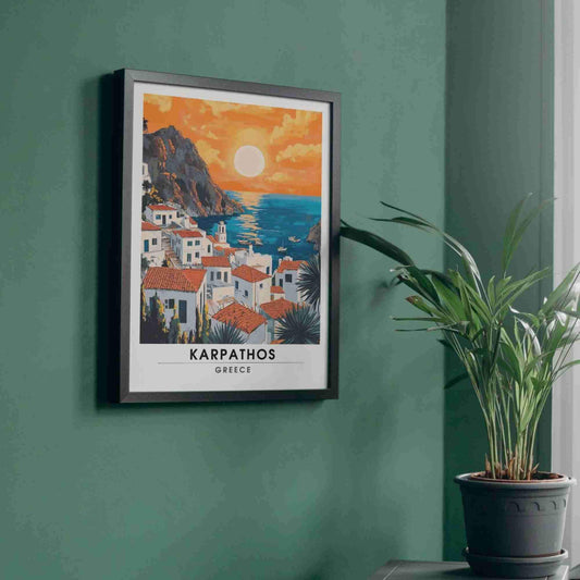 Affiche Karpathos | Impression de voyage Karpathos, Grèce - Au coucher de soleilPrecio habitual A partir de €18,31Precio habitual-25% Precio unitario / por€24,41Precio de oferta A partir de €18,31Oferta