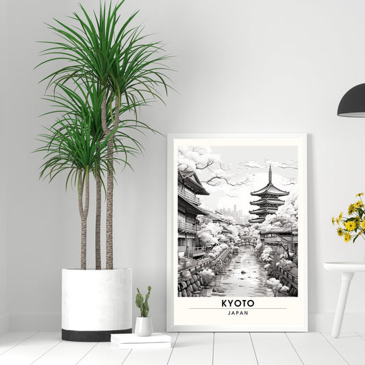 Impression Kyoto | Affiche de Voyage Kyoto | Impression Japon (Noir et Blanc)
