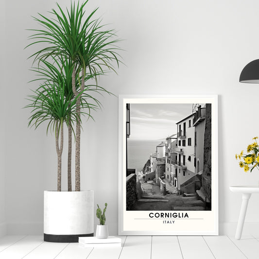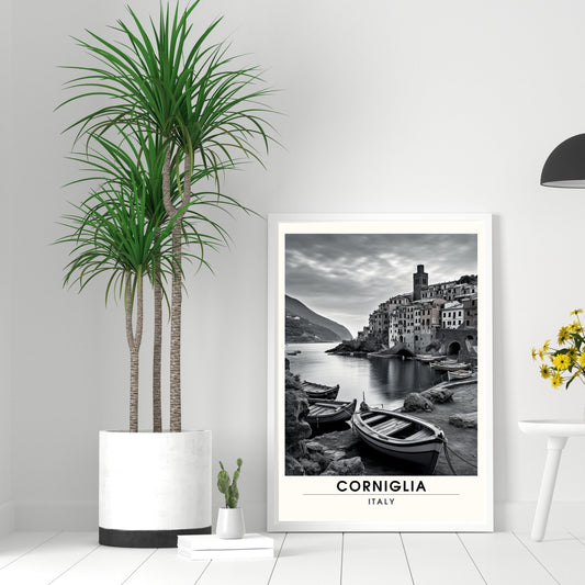 Affiche Corniglia, Italie | impression de voyage Corniglia | affiche Cinque Terre noir et blanc