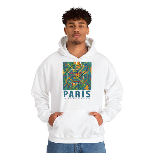 Sweat à capuche Paris – Hoodie unisexe avec design métro parisien, sweat graphique, streetwear tendance, idée cadeau voyage