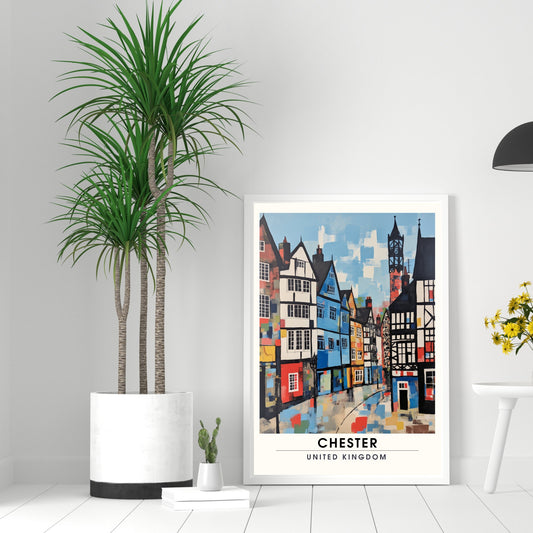 Affiche Chester- Impression de voyage Chester - Impression Paysage Urbain Artistique - Collection Souvenirs du Royaume-Uni