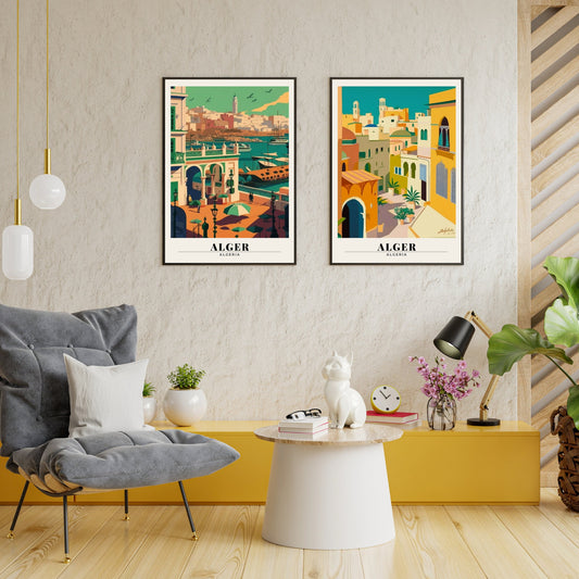 Impression de voyage Alger, Affiche Algérie, affiche de voyage, port d'Alger, affiche Alger