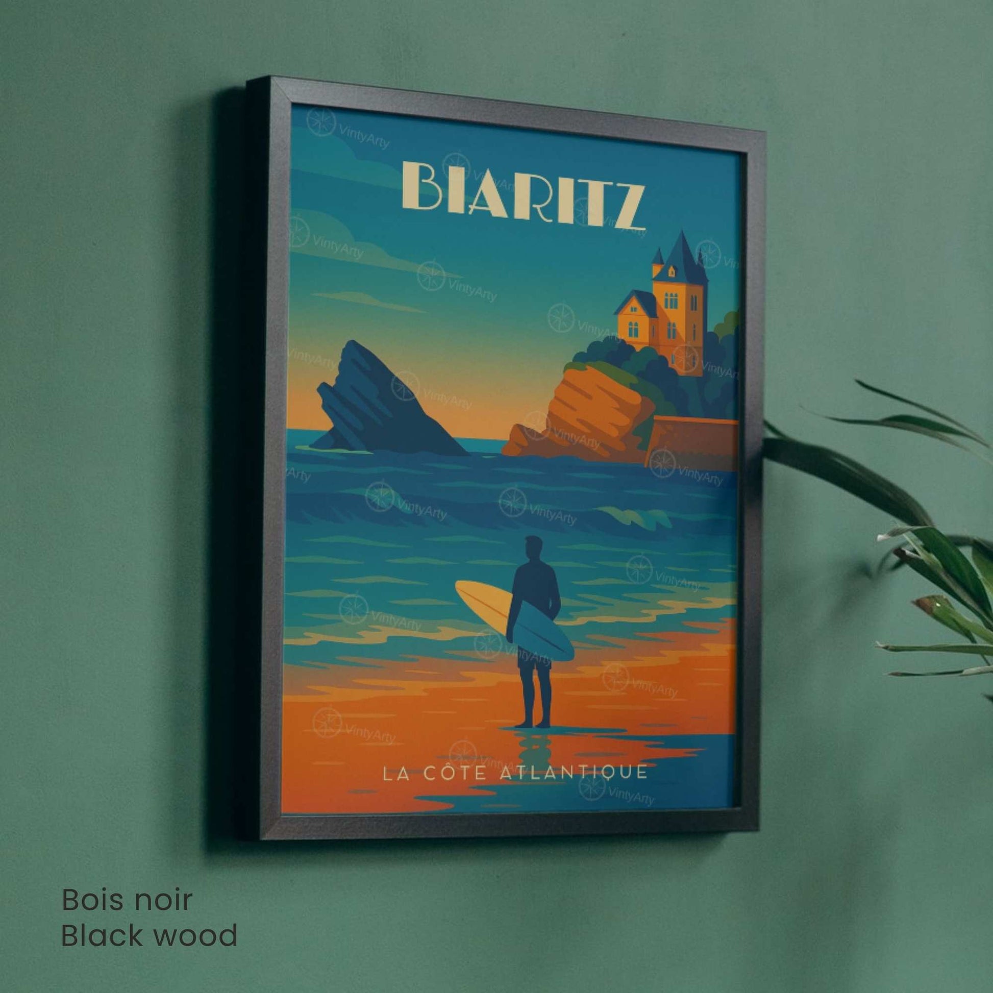 Imprimée localement sur un papier d’art mat 200 g/m², cette affiche de Biarritz capture la beauté sauvage et lumineuse de la côte atlantique française.