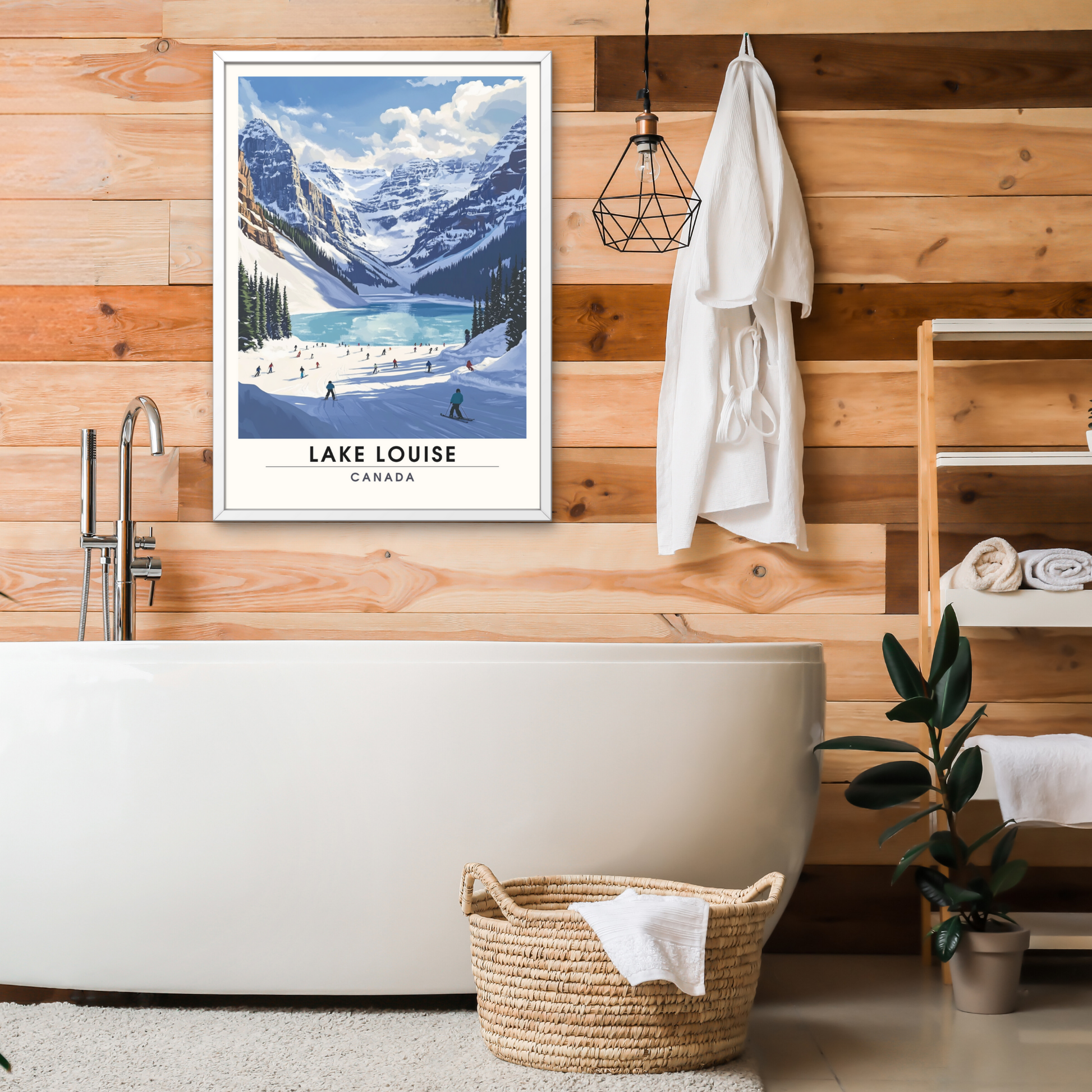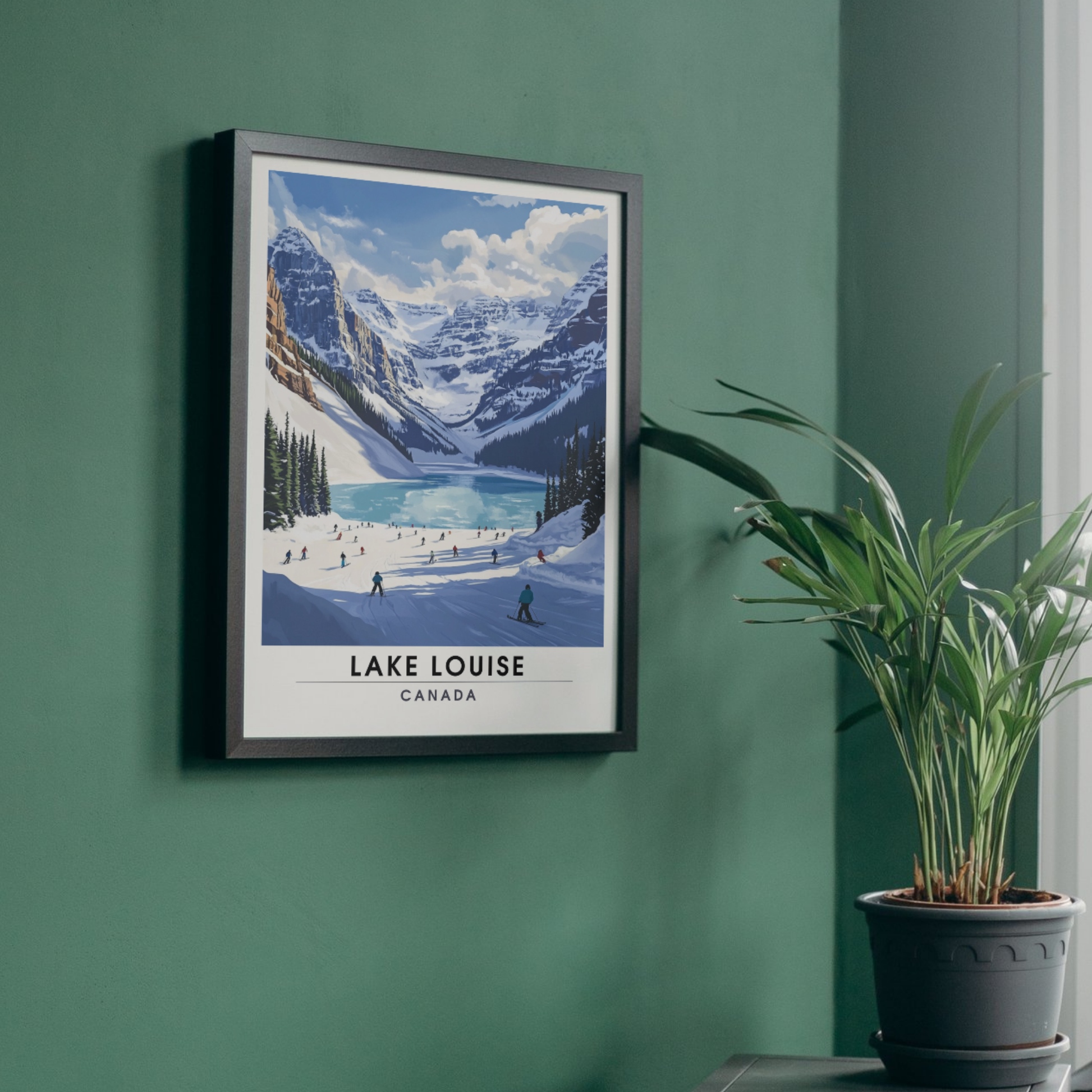 Cette affiche ski Lake Louise est parfaite pour créer une ambiance hivernale chic et inspirante dans un salon, une chambre ou un bureau. Elle s’accorde aussi à merveille avec une décoration chalet ou scandinave. Associez-la à d’autres affiches de ski ou de paysages canadiens pour composer un mur de voyage harmonieux et sportif.