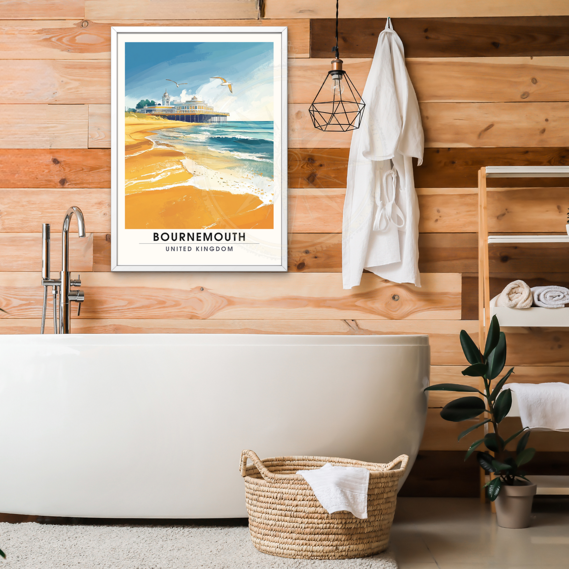 Cette affiche Bournemouth s’intègre parfaitement dans une déco estivale, bord de mer ou minimaliste. Elle est idéale pour une pièce à vivre, une chambre ou un coin lecture, et s’accorde à merveille avec des tons clairs, du bois flotté ou des matériaux naturels. Elle évoque immédiatement le calme des vacances et le charme des stations britanniques.