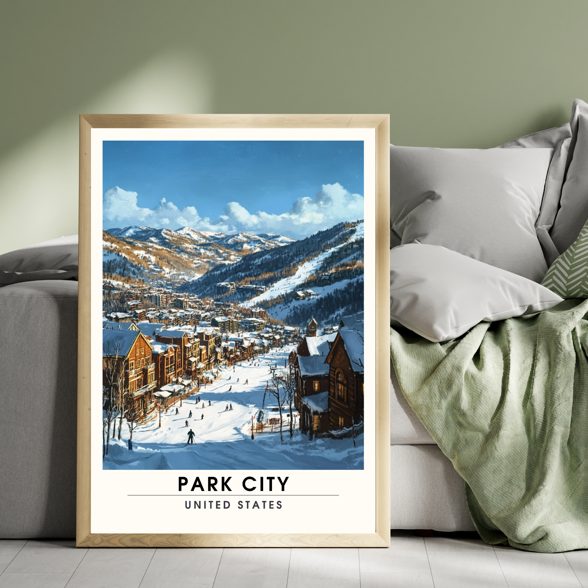 Cette affiche Park City trouvera parfaitement sa place dans une décoration hivernale, contemporaine ou alpine. Accrochée dans un salon, une chambre ou un bureau, elle apporte une note sportive, lumineuse et inspirante. Idéale également pour un chalet ou une maison secondaire en montagne.