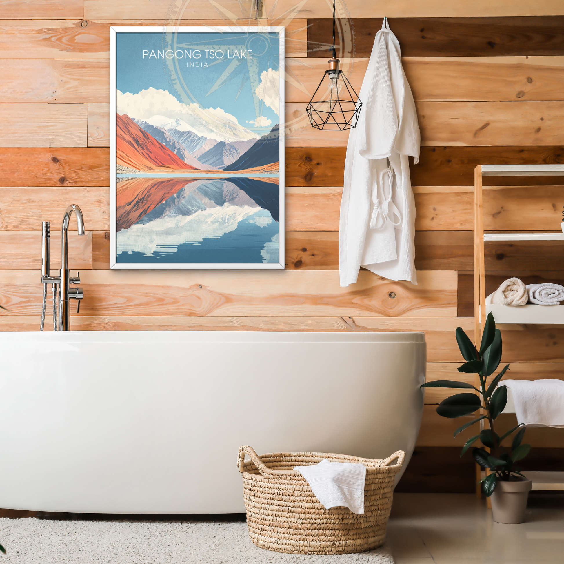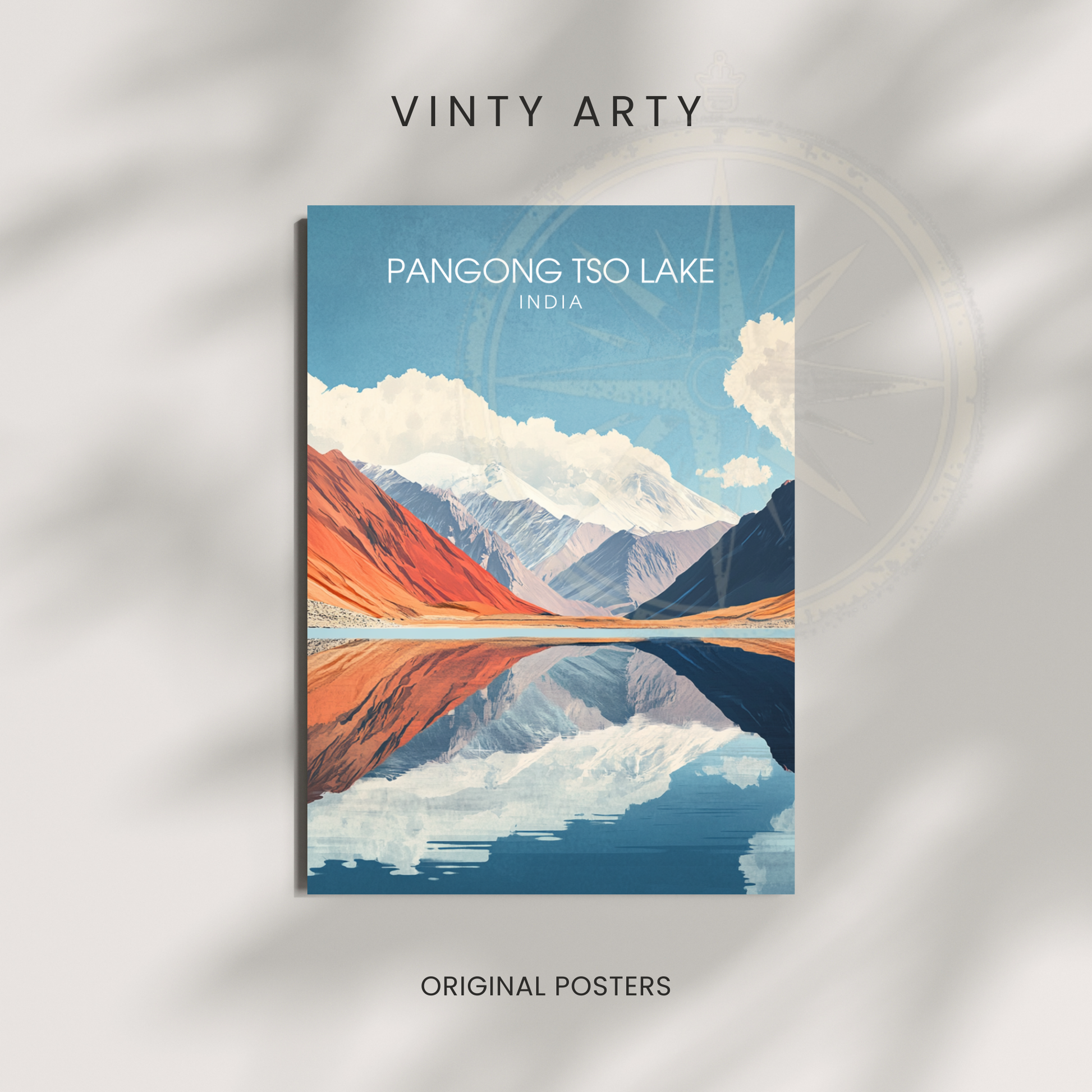 Affiche artistique du Pangong Tso Lake en impression murale : Une échappée visuelle entre ciel et montagnes himalayennes