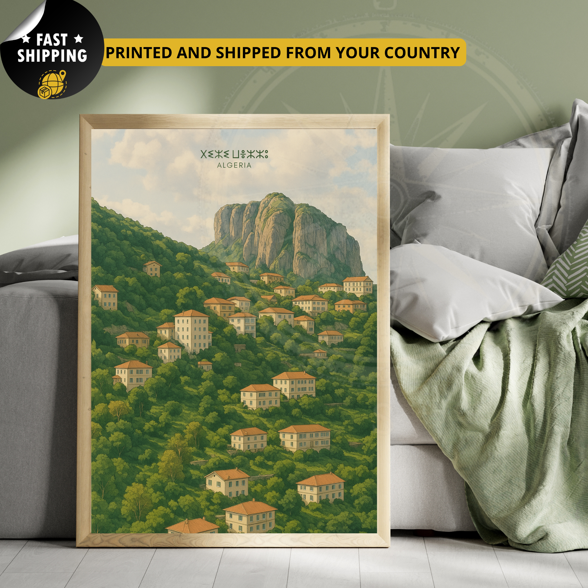 Cette affiche Tizi Ouzou s’intègre parfaitement dans une décoration chaleureuse, ethnique ou contemporaine. Elle apportera une touche de lumière, de culture et d’authenticité à votre salon, votre bureau ou votre espace de lecture. Idéale pour ceux qui veulent afficher fièrement leurs racines kabyles ou simplement leur amour pour la région.