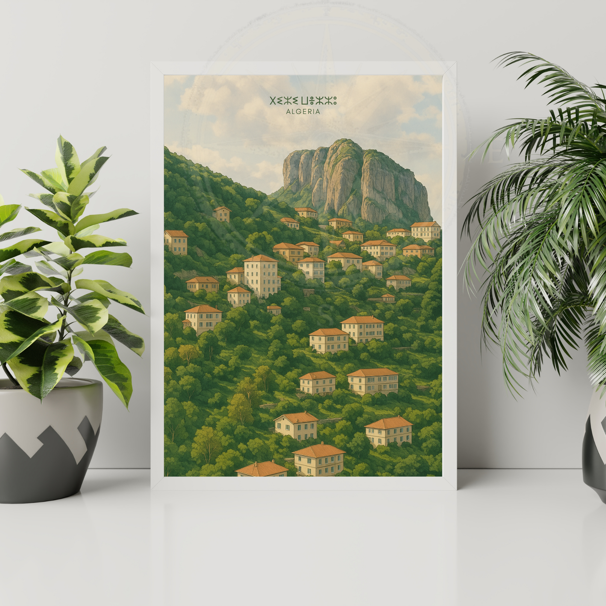Plongez au cœur de la Kabylie avec cette affiche illustrée de Tizi Ouzou, ville emblématique nichée entre montagnes et traditions. Une création graphique qui célèbre l'identité forte et la beauté naturelle de la région.