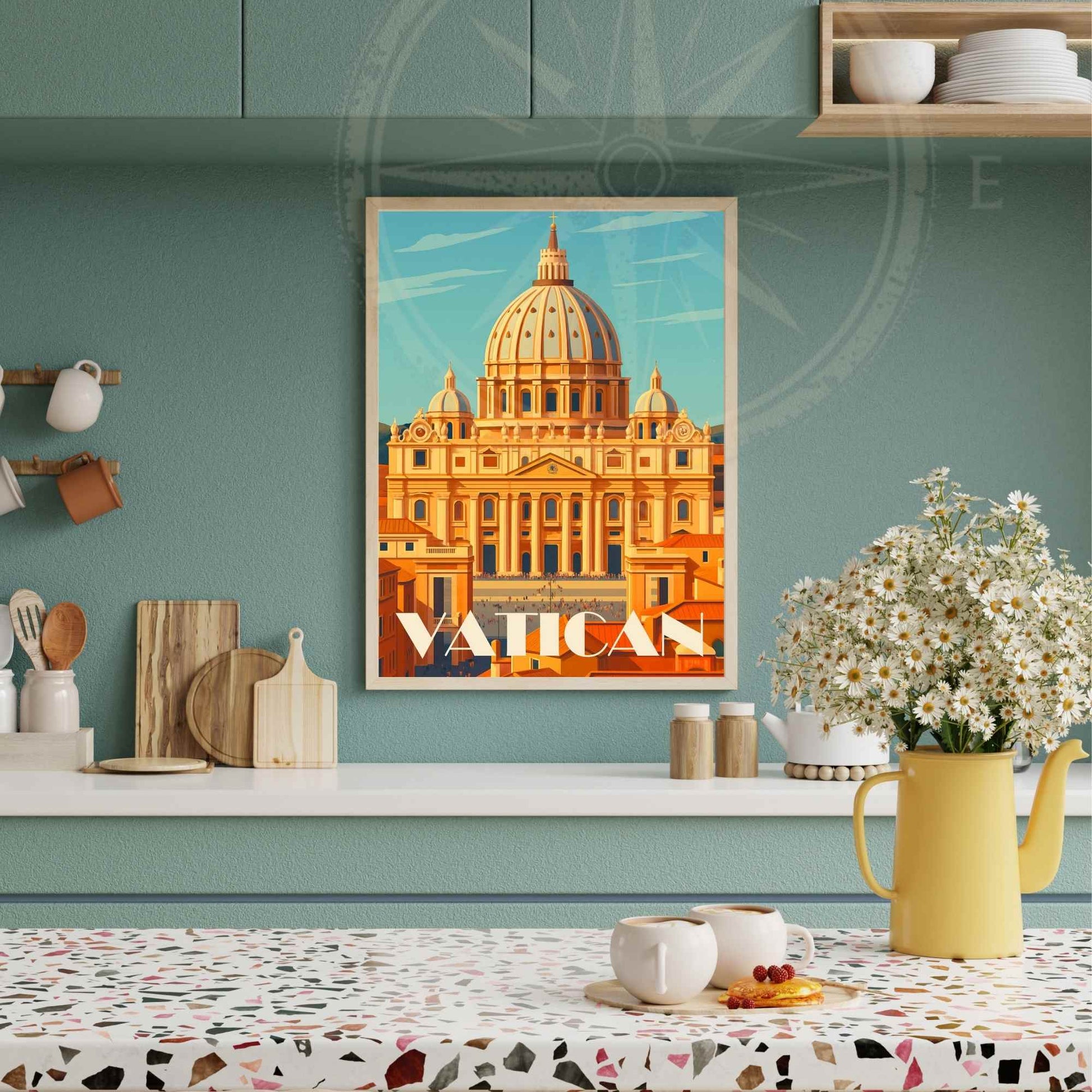Quelle que soit l’option choisie, cette affiche illustrée du Vatican sublimera votre intérieur avec élégance.
